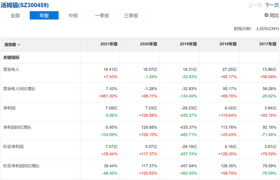 财报显示,围绕以“会说话的汤姆”这个全球知名IP,汤姆猫在2020-2021年分别实现营收18.07亿元与19.41亿元,同比分别增长-1.28%和7.34%;两年实现分别实现净利润为7.53亿元和7.08亿元,分别同比增长126.68%和-5.95%。