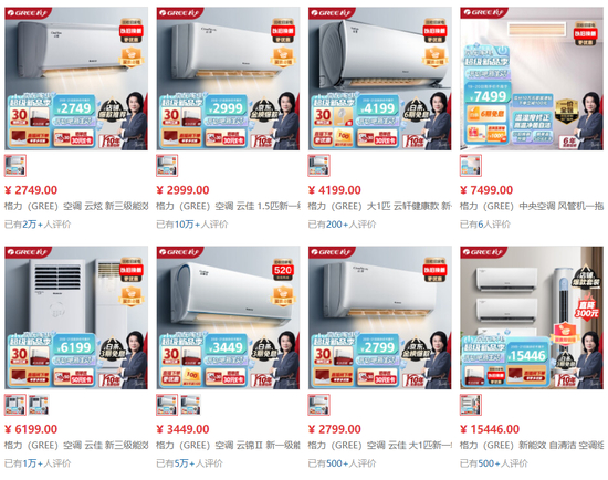 从这些产品的售价来看,格力空调已经基本覆基了低中高三档的空调市场。比如上述提到的“云”系列空调,就处于3000元左右的低端价格区间中;臻新风系列空调的售价就来到了5000-8000元的中段市场;而在上月,还在推出新款的金贝系列,则是格力冲击高端空调市场的主要利器,售价基本在10000元以上。
