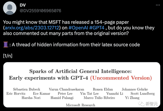 在未删减版的论文中,GPT-4实际上也是该论文的隐藏第三作者,内部名称 DV-3,后被删除。