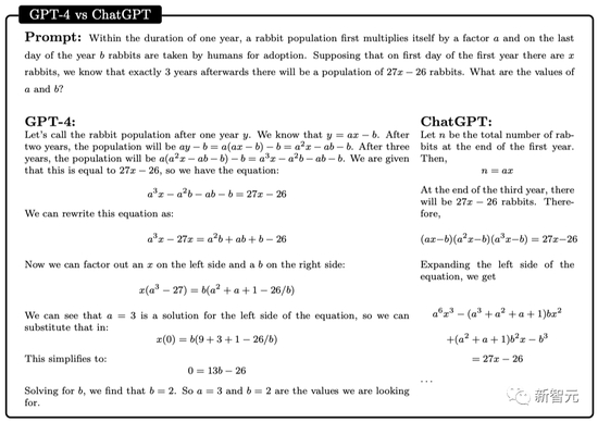 这里,GPT-4成功地得出了解决方案,并提出了一个合理的论点。相比之下,在几次独立尝试中,ChatGPT始终无法给出正确的推理和答案。