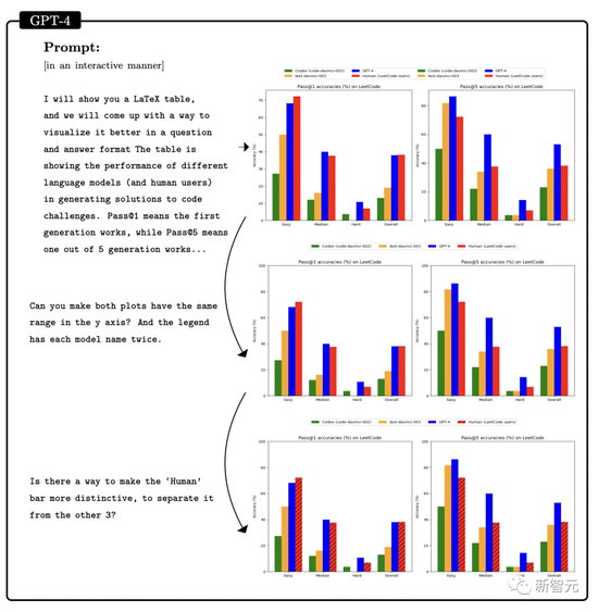 另外,还让GPT-4将上表中LeetCode的准确率数据可视化为图表,结果如图所示。