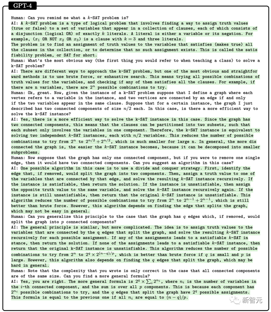 这次对话反映出GPT-4对所讨论的本科级数学概念的深刻理解,以及相当程度的创造力。