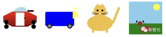 当提示GPT-4使用可伸缩矢量图形(SVG)生成物体图像,如猫、卡车或字母时,该模型生成的代码通常会编译成相当详细,且可识别的图像,如下图:
