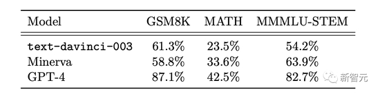 结果发现,GPT4在每个数据集上的测试都超过了Minerva,并且在两个测试集的准率都超过80% 。