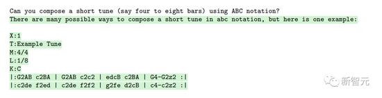 研究人员要求GPT-4用ABC记谱法编码生成和修改曲调,如下: