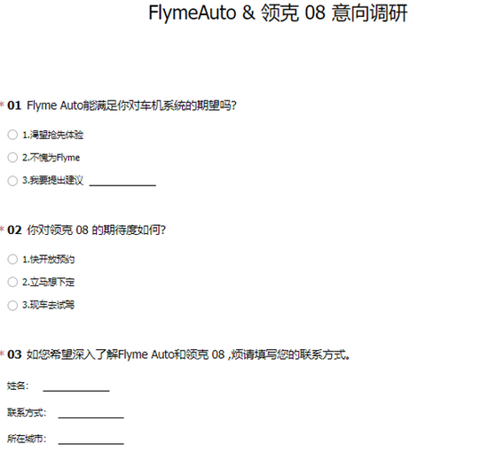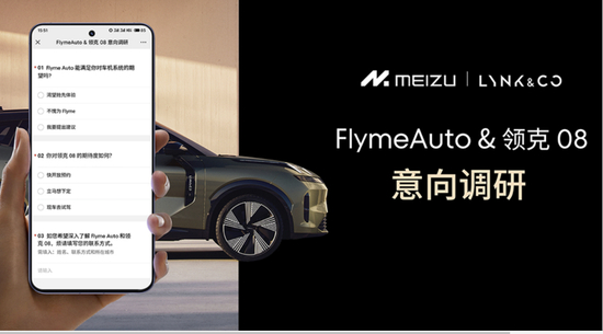 如果你现在打开魅族官网,首先映入眼帘的不是魅族手机,而是Flyme Auto &领克08意向调研。当你向下滑动页面时,才能看到前几天刚刚发布的魅族20系列。