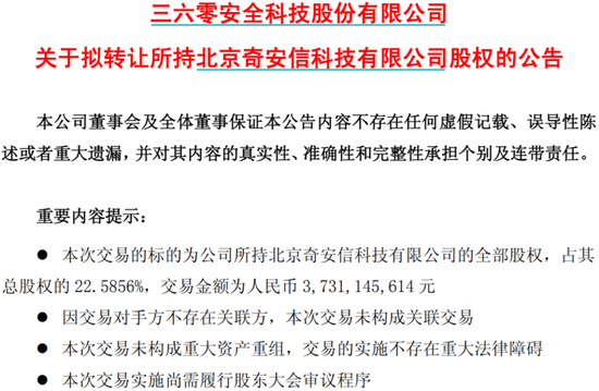 2019年4月,三六零一则公告直接宣告两者的彻底“分家”,同时也从并肩作战走到了竞争对抗。公告显示,“董事会同意对外转让所持奇安信科技的全部股权,同时将终止对奇安信就‘360’品牌、商标、商号、技术、数据等授权。”