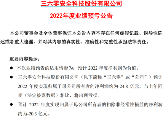 与此同时,三六零或将交出了一份令人失望的答卷,预计2022年营收、利润双降,或将巨亏近25亿元。值得一提的是,这或许是三六零上市后首次亏损。原因在于,一方面核心的广告业务见顶后开始下滑;另一方面投资亏损拖累财报。