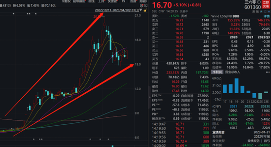 此后的剧情大家就都熟知了,2018年三六零借壳江南嘉捷登陆A股,名声响彻大江南北,如今在ChatGPT概念股加持下一路“狂飙”。现在看来,胡欢这句“欣赏周鸿祎的女人不多。现在看来,我应该是独具慧眼的女人”也得到了验证。