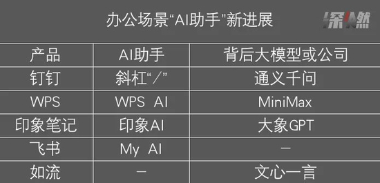 4月18日这一天,钉钉、WPS、印象笔记,都迫不及待地对外展示自家的“AI办公助手”。而在一周前,飞书的AI助手“My AI”演示视频,才刚刚发布。