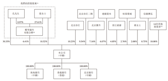 在本次上市前的股权架构中,孔健、张琰平及横琴绿竹有限合伙分别持有绿竹生物30.35%、10.52%及6.41%的股份。据招股书披露,孔健、张琰平夫妇以及横琴绿竹有限合伙为一组控股股东,合计持股约47.28%。