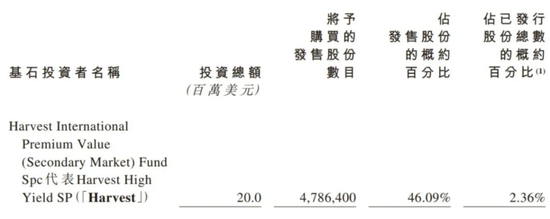 据招股书披露,Harvest International Premium Value认购2000万美元,占绿竹生物发行股份的46.09%,持股比例为2.36%。换句话说,Harvest International Premium Value在两天的时间内亏了约1000万美元。