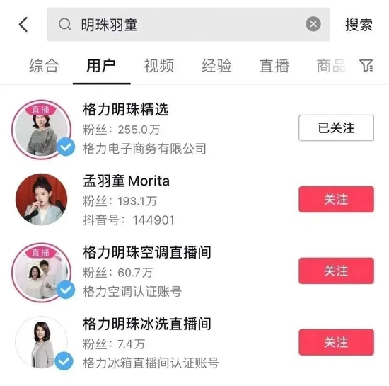 5月10日,有媒体发现格力电子商务有限公司旗下“明珠羽童精选”抖音号已更名为“格力明珠精选”,同时该抖音号早期的孟羽童相关短视频内容也“消失”了。随后,格力对外官宣,“孟羽童已离开,不在公司任职”。
