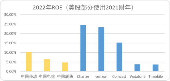我们直接来看最核心的净资产收益率,三大运营商中,除了移动超过10%外,电信联通均处于行业低位。相比之下,全球运营商龙头Verizon高达23.2%。