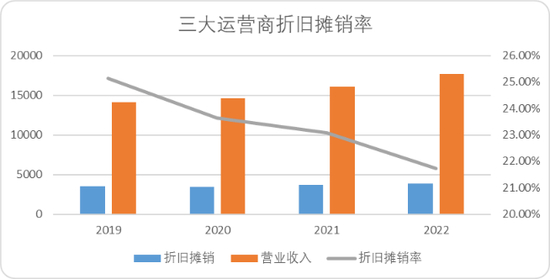 同时在资产端,三大运营商相较于同行,重资产和产业化的逻辑也根深地固,这就导致三大运营商的摊销率远高于同行。