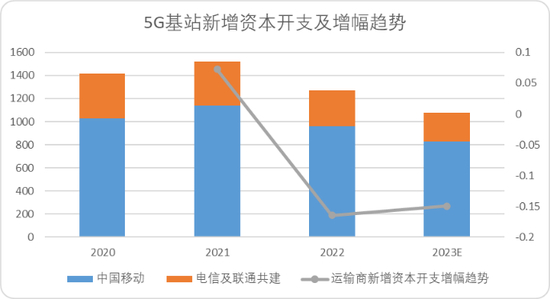 图:5G基站新增资本开支及趋势,来源:中金点睛、企业年报