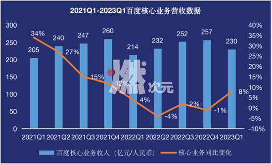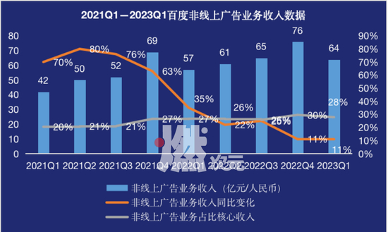 其中,百度核心业务实现营收230亿元,同比增长8%;在线营销业务(线上在线营销等业务)实现166亿元营收,同比增幅6%;非在线营销业务营收为64亿元,同比增幅11%。