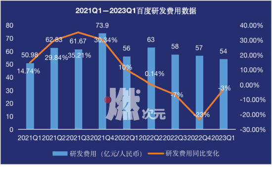 从2022年第三季度开始,百度研发费用已经连续三个季度负增长,到本季度虽然改变明显,仍有3%的负增长。
