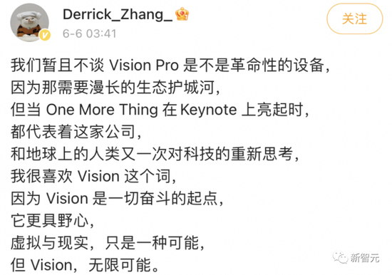 但当One More Thing在Keynote上亮起时,都代表着这家公司,和地球上的人类又一次对科技的重新思考。Vision是一切奋斗的起点,它更具野心,虚拟与现实,只是一种可能,但Vision,无限可能。