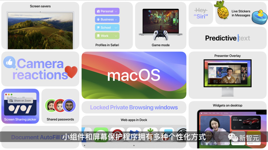 macOS Sonoma带来了增强的视频会议功能,让你能够在任何视频会议App中更有效地展示和分享工作。Presenter Overlay,是一种全新的视频效果,能够将共享的内容夹在人物和背景之间。这样,演讲的人就出现在共享屏幕之前了。