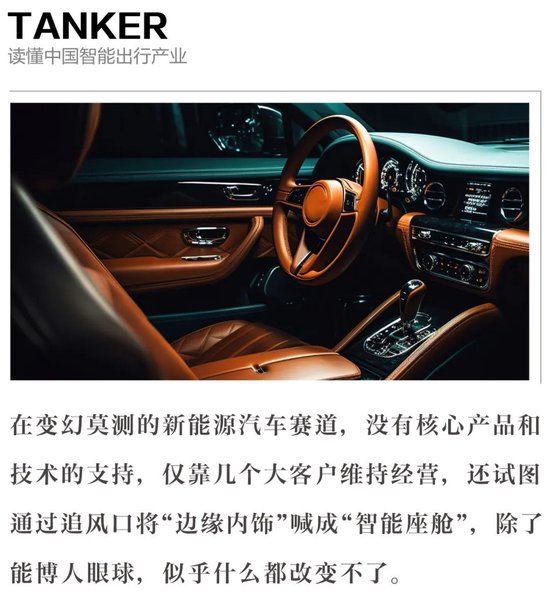 尤其在变幻莫测的新能源汽车赛道,没有核心产品和技术的支持,仅靠几个大客户维持经营,还试图通过追风口将“边缘内饰”喊成“智能座舱”,除了能博人眼球,似乎什么都改变不了。