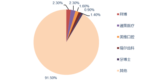 兴建一家医院需要花费大量的资金,这个数量级可不是开玩笑的。而且目前整个民营口腔行业竞争格局松散,即使是行业龙头通策医疗的行业渗透率也仅为2.3%,大部分依然是地方性口腔医院的天下,所以大型连锁机构想要到新地方进行扩张之前,都会与当地口腔医院洽谈合作。