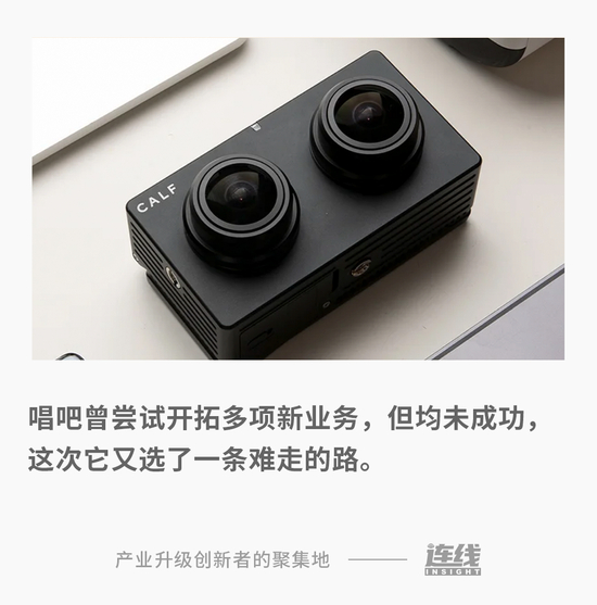 综合来看,唱吧想要凭着这款产品便走通新的道路,并不容易。实际上,唱吧的焦虑一直存在着,VR照相机也并不是唱吧的首次尝试寻找第二曲线。