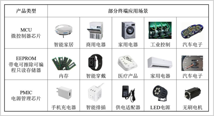 公司主营MCU等集成电路产品,下游应用在智能家居、家电、医疗设备等产品,打入了小米、LG、苏泊尔、美的、海信等多家知名品牌的供应链。