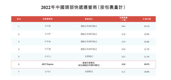 2022年中国头部快递运营商(按包裹量计),图源极兔招股书