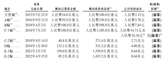 药师帮能经得起持续亏损,离不开投资方在背后不断烧钱融资。招股书显示,成立至今,药师帮共融资8轮,融资额累计超过30亿元人民币。截至2022年4月药师帮最后一轮融资,公司的估值达到14.35亿美元,刚好迈入百亿人民币市值大关。