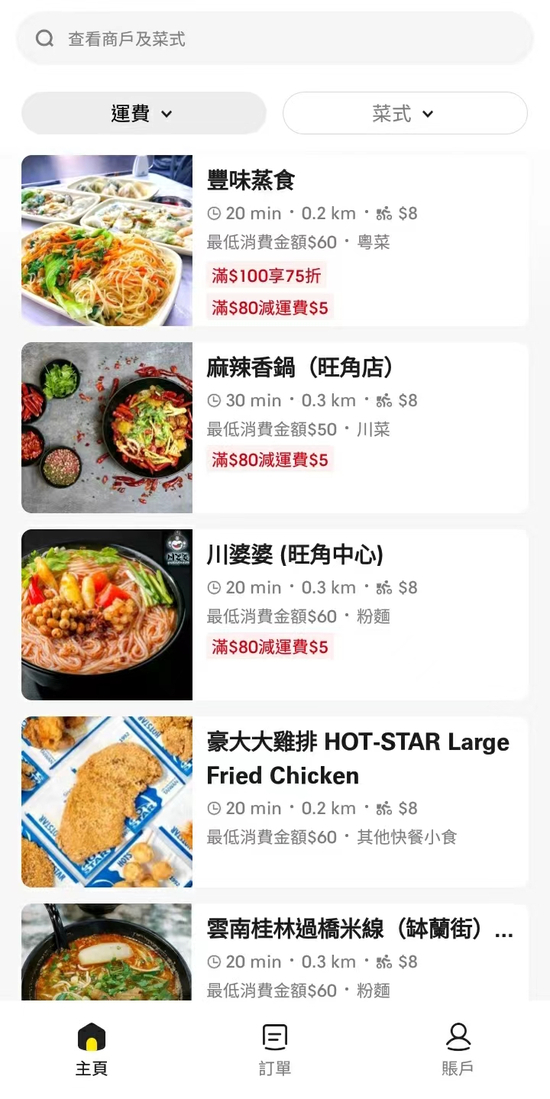 “过去我经常用Deliveroo和Foodpanda这两家点外卖,但都会选择自取,一是因为我一个人吃不到外送‘起步价’,二也是因为‘贫穷’,运费对我来说太贵了。”坐标中环的金融业白领栗宁说,根据自己以往的经验,常常要达到消费百元甚至数百元港币的“门槛”,平台和店家才提供送餐服务,而运费基本最低也要20港币。