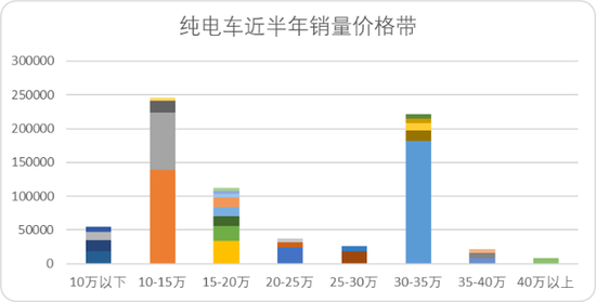 图:新能源及纯电销量及价格带数据,来源:懂车帝、汽车流通协会,锦缎整理