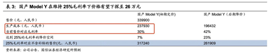 国产MODEL Y 利润率推测,来源:国信证券经济研究所