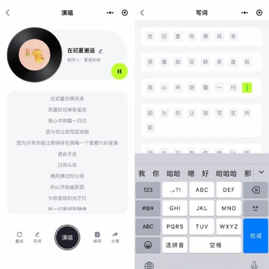图/“歌歌AI写歌”小程序歌曲生成界面 (左)