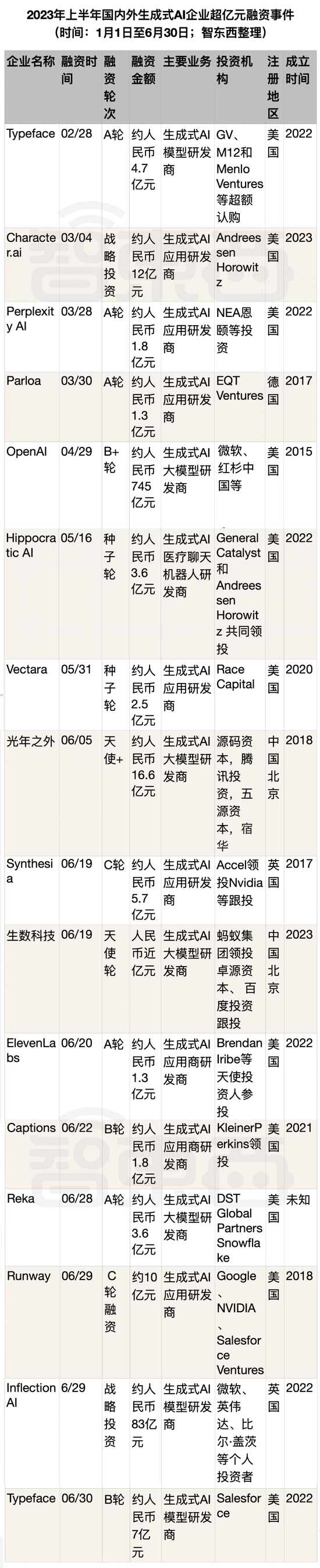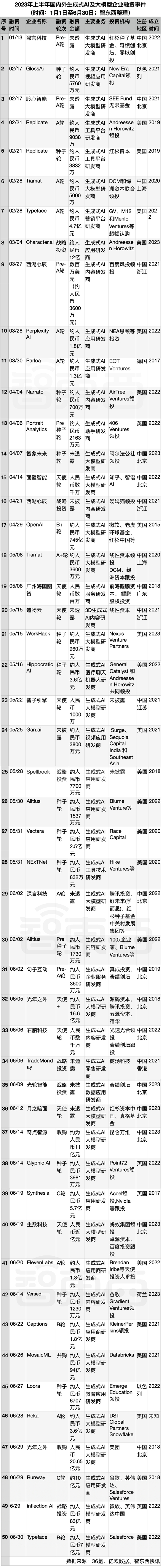 ▲2023年上半年国内外生成式AI企业超亿元融资事件