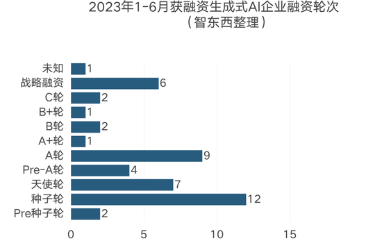 ▲2023年1-6月获融资生成式AI企业融资轮次