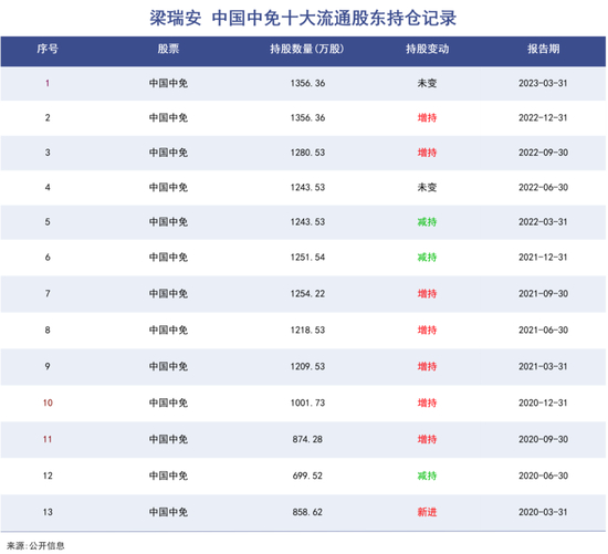 梁瑞安在2020年一季度新进中国中免858.62万股,此后一路增持,中途甚少卖出,如今持股总数已达1356.36万股。考虑到梁瑞安几次增持的时点和股价,只怕已经将前期盈利全部吐出。