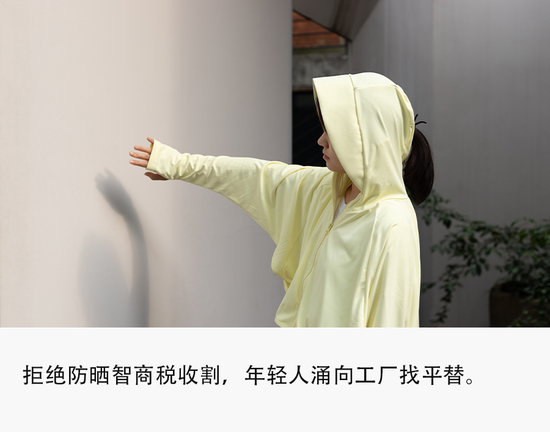 另一方面,则是“卷”向产品设计。比如,把防晒装逐渐设计成工装风,满足通勤需求,把防晒衣设计成风衣模式,在春秋季节也可以穿,延长使用场景。总之,品牌们花尽心思,开始研发出显瘦、显腿长等不同款式,让防晒衣不再只是一件平平无奇的外套。