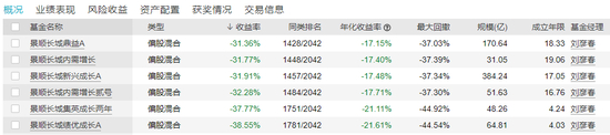 如今(截至2023年一季度末),刘彦春的管理规模已自1163亿元缩水35%,至751亿元。截至今年7月11日,刘彦春所管理的6只基金近两年的跌幅,全部在30%以上,其中景顺长城集英成长、绩优成长A跌幅更是逼近40%。在同类排名方面,以上6只基金均比较靠后。