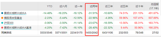 其中,管理规模最大的景顺长城新兴成长A(超384亿)在近两年均落后于其比较基准,尤其是近6个月落后超10%。
