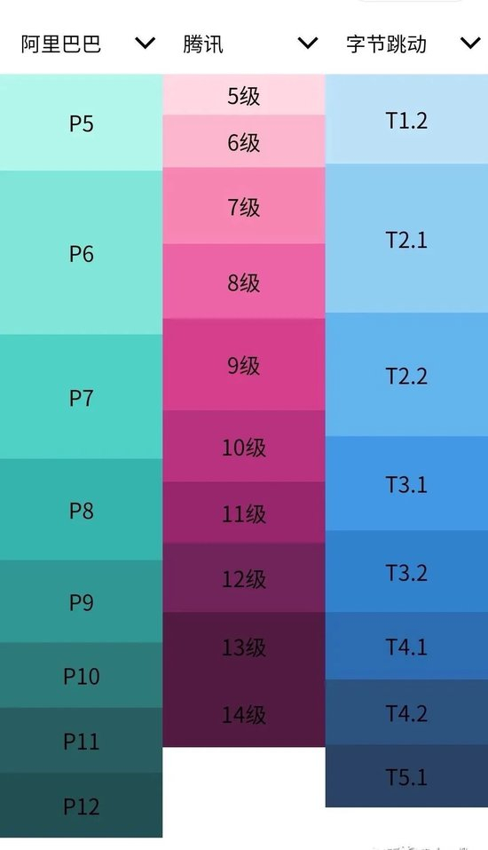 早在2020年,阿里就尝试弱化P序列,向更为扁平的形式改革。2019年,腾讯也同样取消了原 6 级 18 等(1.1-6.3 级)的职级体系,优化为 14 级 (4-17 级)。