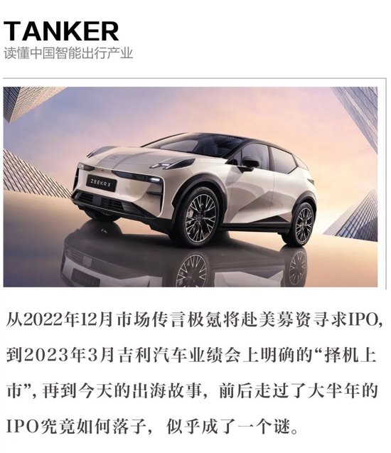 从2022年12月的市场传言极氪赴美募资寻求IPO,到2023年3月吉利汽车业绩会上明确的“择机上市”,再到今天的出海故事,前后走过了大半年的IPO究竟如何落子,似乎成了一个谜。