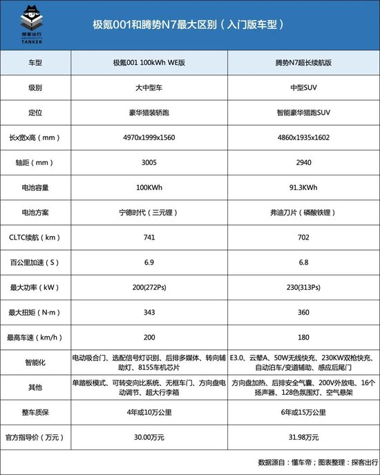 在「探客出行」看来,只要消费者不是对中大型车和中型SUV有特别的挑剔,腾势N7或许将是极氪001面临的最强劲“敌手”。