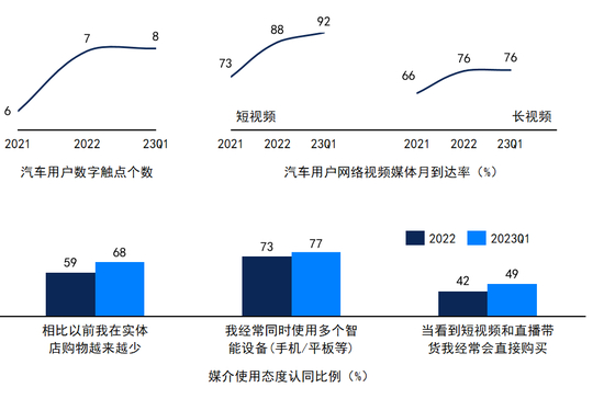 用户行为上,随着数字媒体增长放缓、达峰,线上消费行为已经融入大众消费习惯之中,同时,在消费者层面,新能源车与传统燃油车体验完全不同,处于行业变革期的消费者自然有更主动接受信息的意愿,拥有更开放的心智,这为新兴品牌提供了生长的土壤。