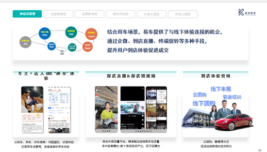 之于体验决策型,易车结合用车场景,提供了与线下体验连接的机会,通过车主和达人的种草体验、探店直播、短视频等多种手段进行引流,提升用户到店体验,再通过团购、静展等方式促进经销商端的成交转化。