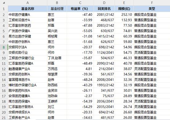 赵蓓近两年业绩不佳,那医疗保健行业其它基金的业绩情况如何呢?