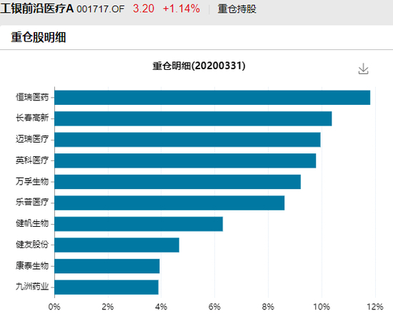 ▲(工银前沿医疗A,2020年一季度重仓股情况。数据来源/Wind)