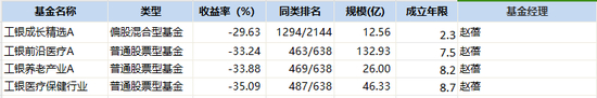 虽然赵蓓的业绩在同类基金里中规中矩,但拉长时间来看,除了成立时间较短的工银成长精选为亏损状态,其它三只基金的年化收益均为正,其中工银前沿医疗A、工银医疗保健行业分别达到了16%、12%。