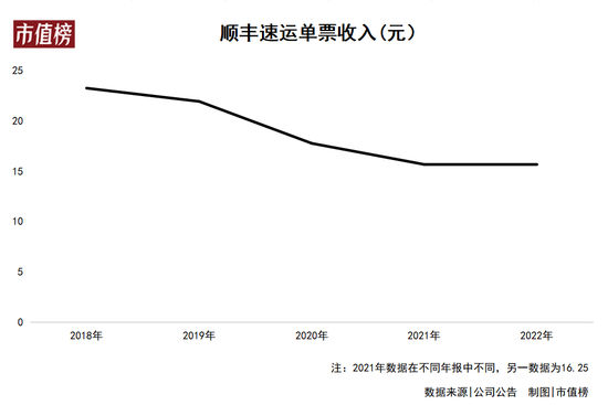 根据顺丰历年的财报数据显示,自从2019年以来,顺丰速运物流的单票收入不断下滑,从2018年的23元一路向下,至今年上半年最低时一度在15元/票徘徊。