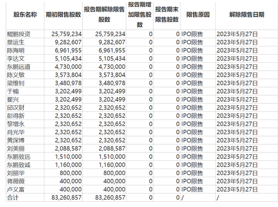 图 / 东鹏饮料公告(图一);东鹏饮料2023年半年报(图二:限售股份变动情况表)